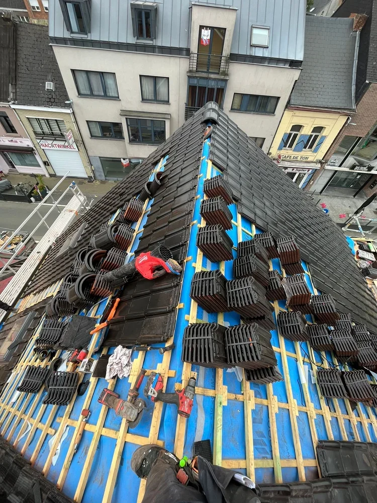 Voor dit project ging Aalsterse Dakwerken tot in de kern: de volledige houtconstructie van het dak werd vernieuwd en zorgvuldig opgebouwd om opnieuw jarenlang stevigheid en betrouwbaarheid te garanderen.
