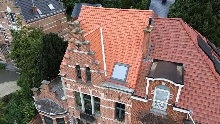 Het dak werd vervolgens vernieuwd met de Stormpan 44 natuurrood, een tijdloze en duurzame dakpan die zorgt voor een klassieke en stijlvolle uitstraling. Ook op het vlak van licht en comfort werd dit project een succes: twee bestaande Velux-dakramen werden vakkundig herplaatst en er kwam één nieuwe Velux bij voor extra daglicht.